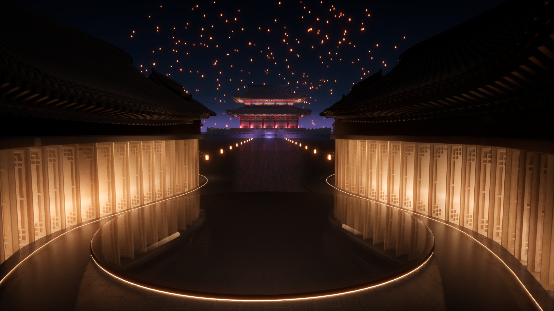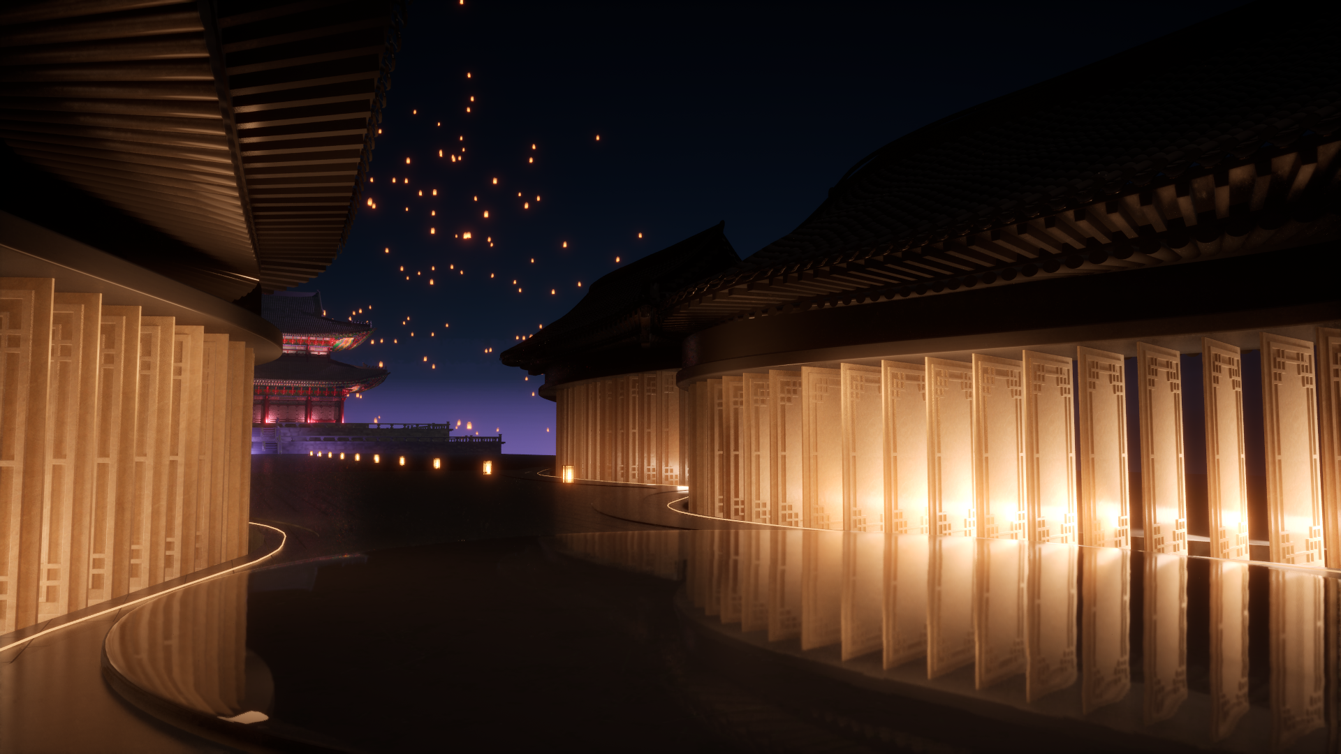 밤의 궁궐을 하나의 빛의 공간으로 재해석한다.