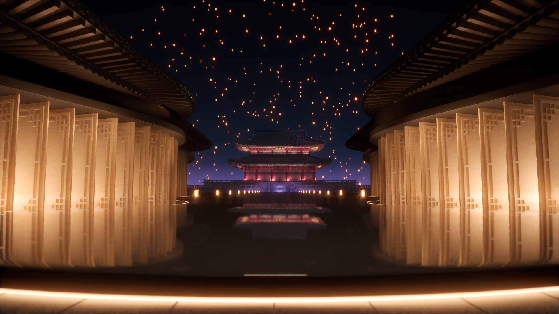 하늘 위로 수많은 불빛이 떠올라, 왕궁 위를 유영하는 별처럼 반짝인다.