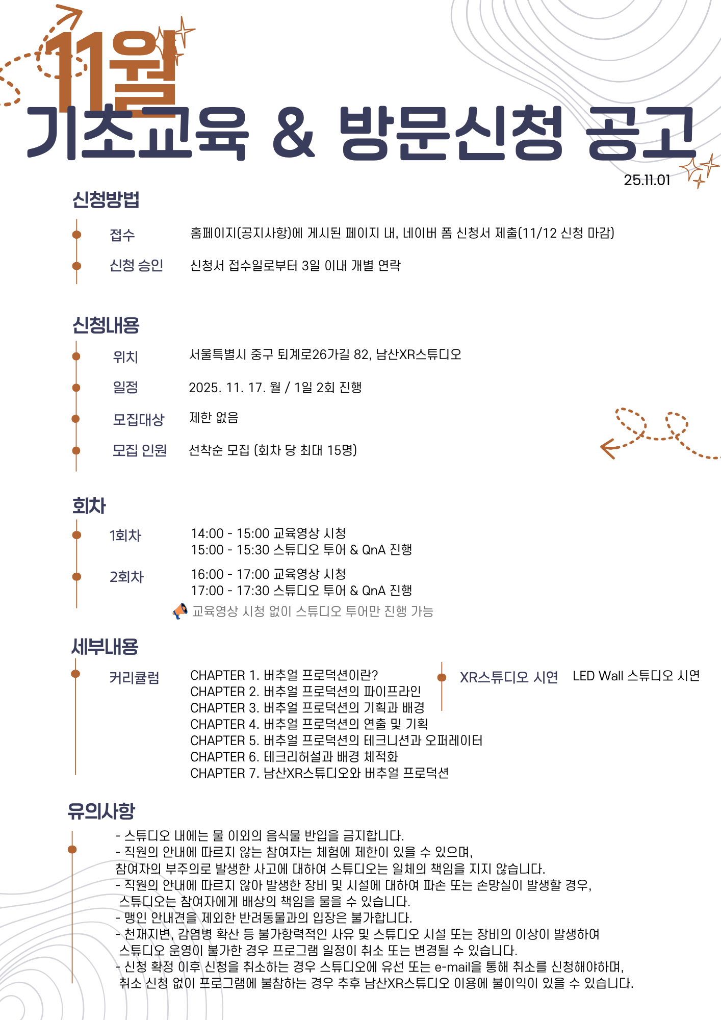 '스튜디오 기초교육 및 방문 신청' 을 운영하오니 많은 관심과 참여 바랍니다.