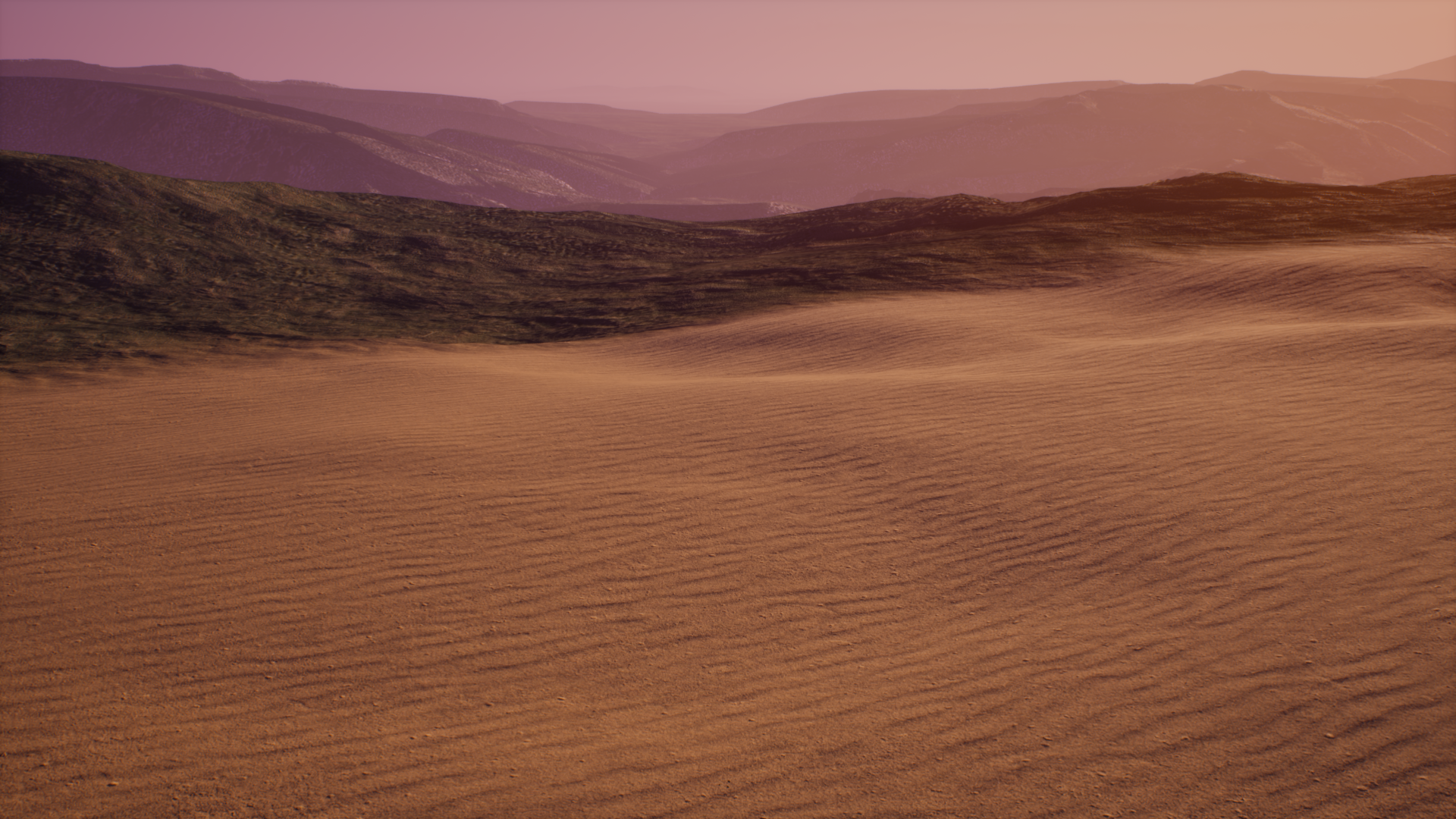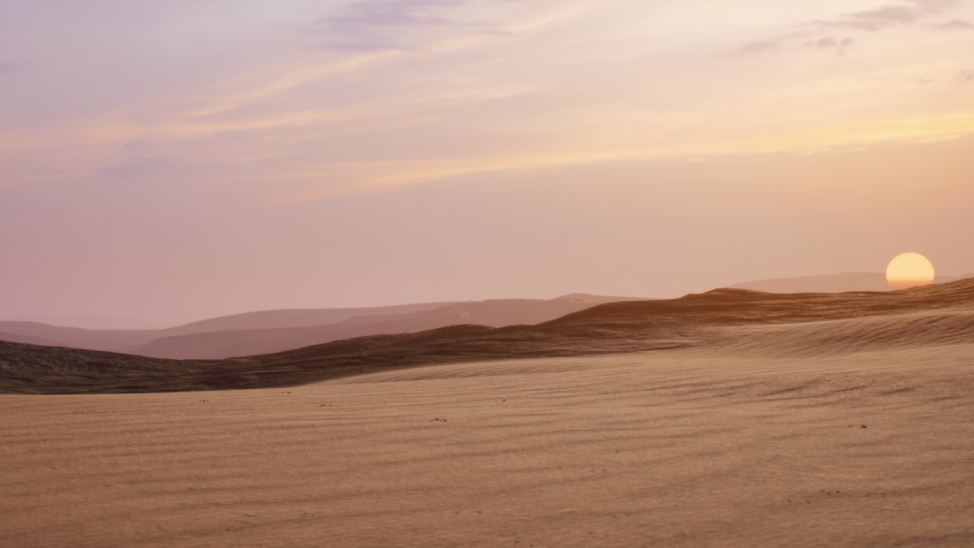 붉은 석양 아래 모래결이 부드럽게 이어지고,