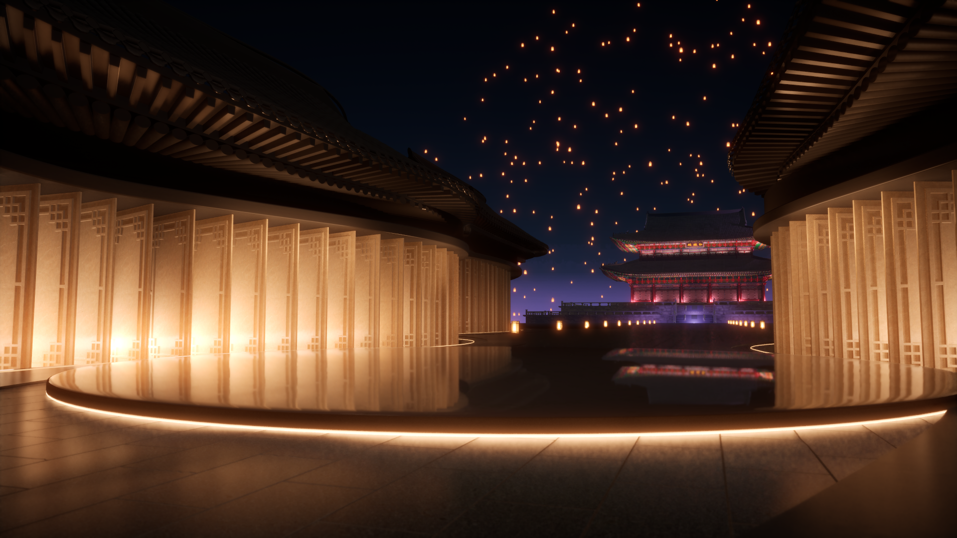 밤의 궁궐을 하나의 빛의 공간으로 재해석한다.