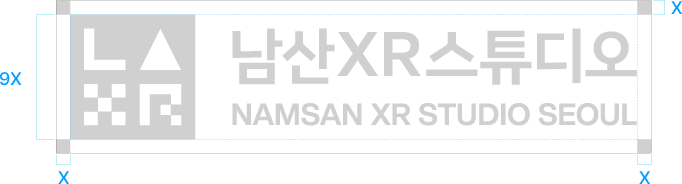 심볼마크는 한글과 영문 조합의 네이밍 특징과 XR기술의 특징인 가상과 현실의 트랜지션을 디지털 코드화하여 남산XR스튜디오만의 차별화된 정체성을 담았습니다.